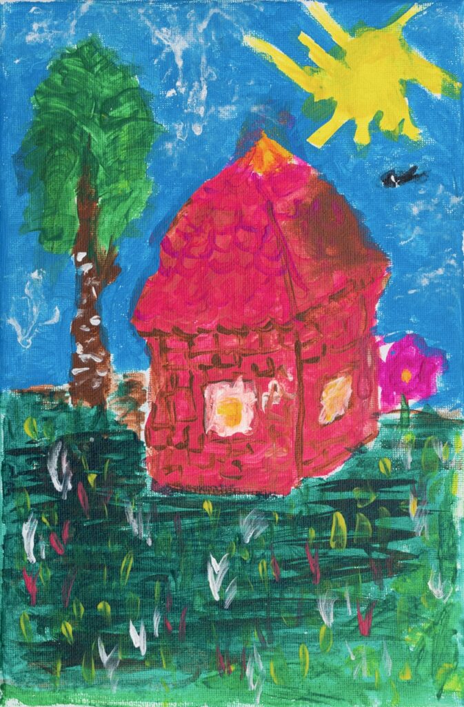Я иду на звук и оказываюсь в пеш там. Апа сидит на полу у окна. Печка почему-то затоплена, хотя окно распахнуто настежь. Я вижу зелёный орешник и абрикосовое дерево, всё усыпано плодами. В комнату задувает прохладный летний ветерок.