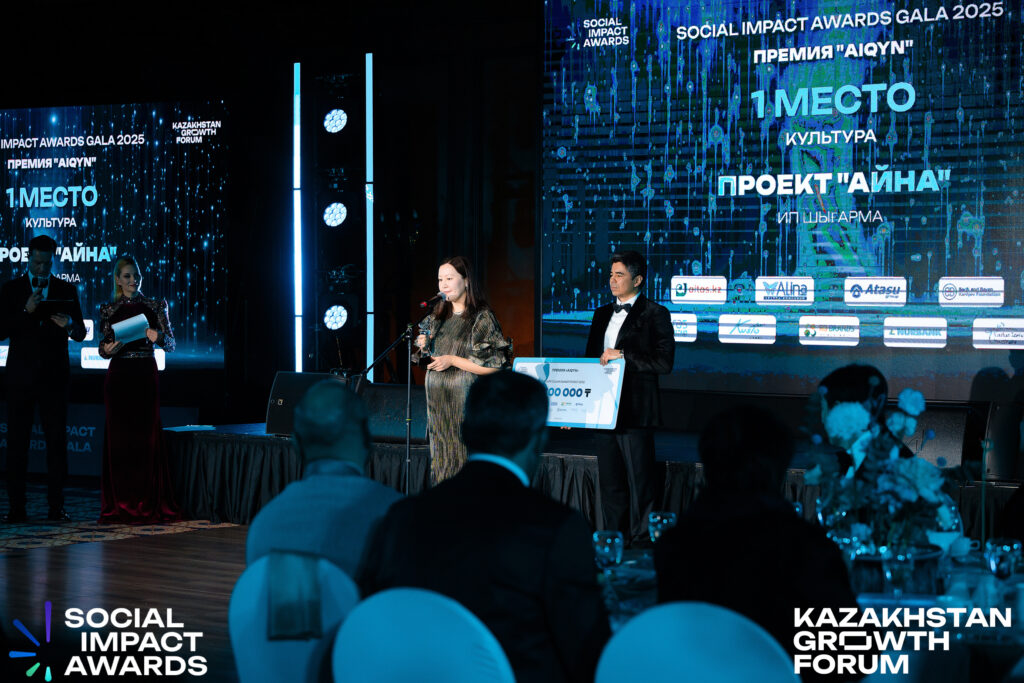4 декабря на церемонии Social Impact Awards 2025, организованной Kazakhstan Growth Forum, наш литературный проект «Айна» получил 1 место в номинации «Лучший социальный проект года» и был удостоен премии «AIQYN».